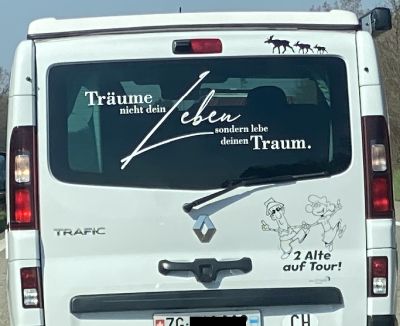 Der war zu schnell weg für ein besseres Foto. Ich kann selbst nur noch "I love my penis" entziffern.