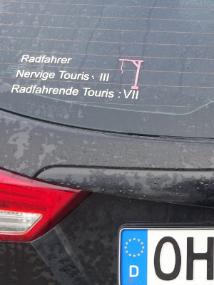 Hier haben wir ein besonders prachtvolles Exemplar eines Coronamaßnahmengegners, der auch vor lustigen Morddrohungen nicht zurückschreckt. Das künstliche Kätzlein hinter der Heckscheibe bildet da einen pittoresken Kontrast.